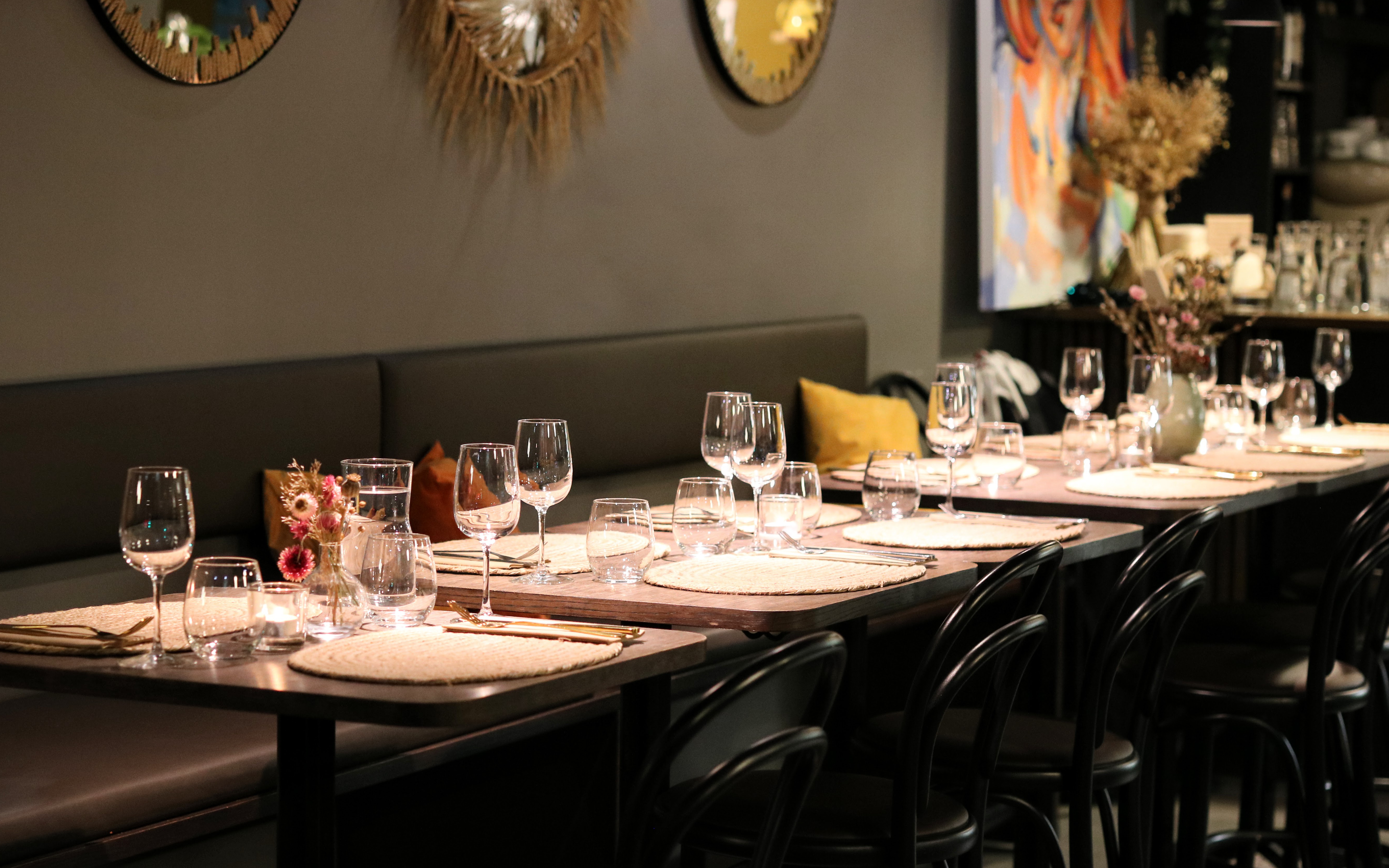 Lokalen är sådär härligt varmt inbjudande trots sitt helsvarta tak och där bruna stolar, bord och bordstabletter accentuerar värmen ytterligare.