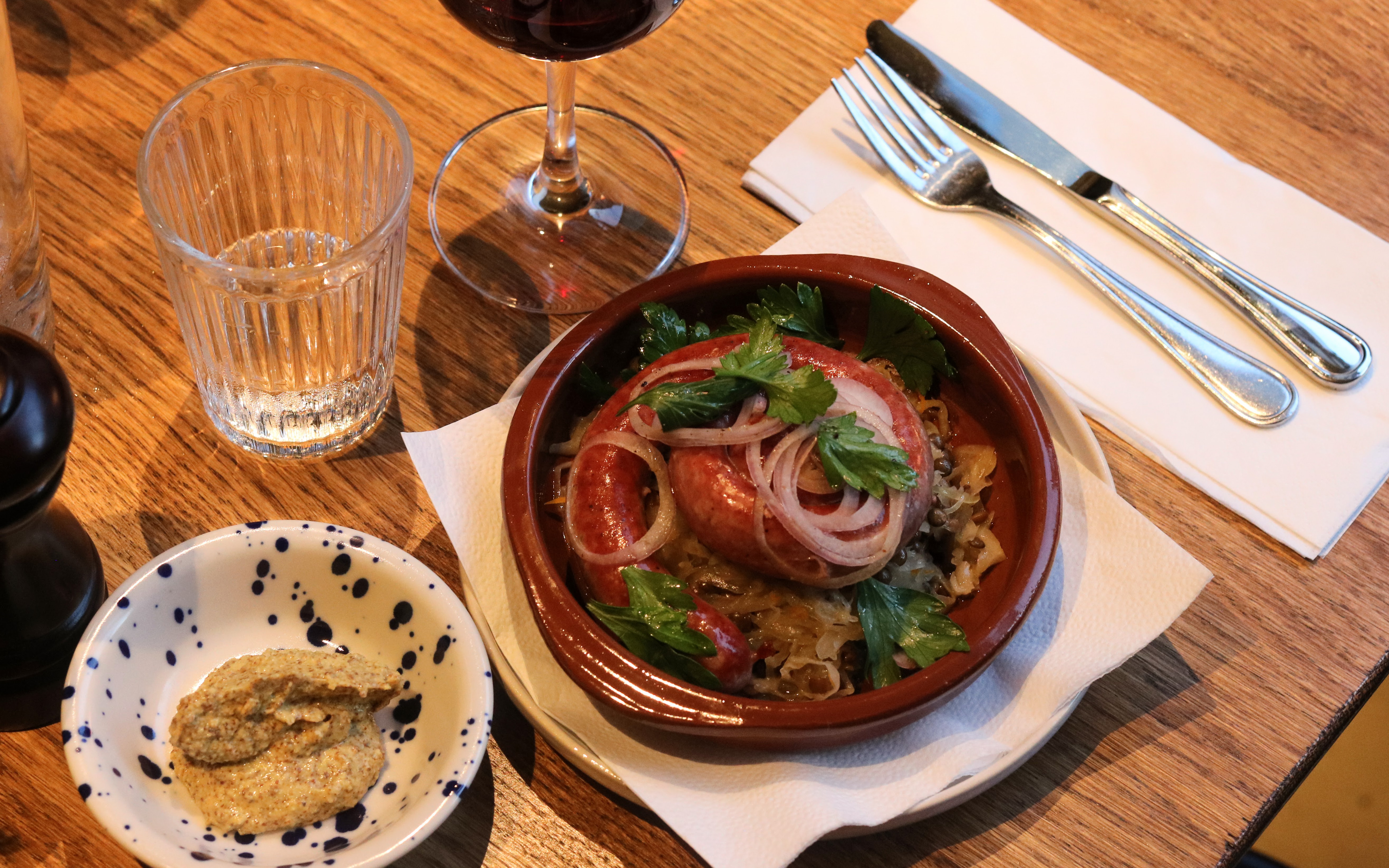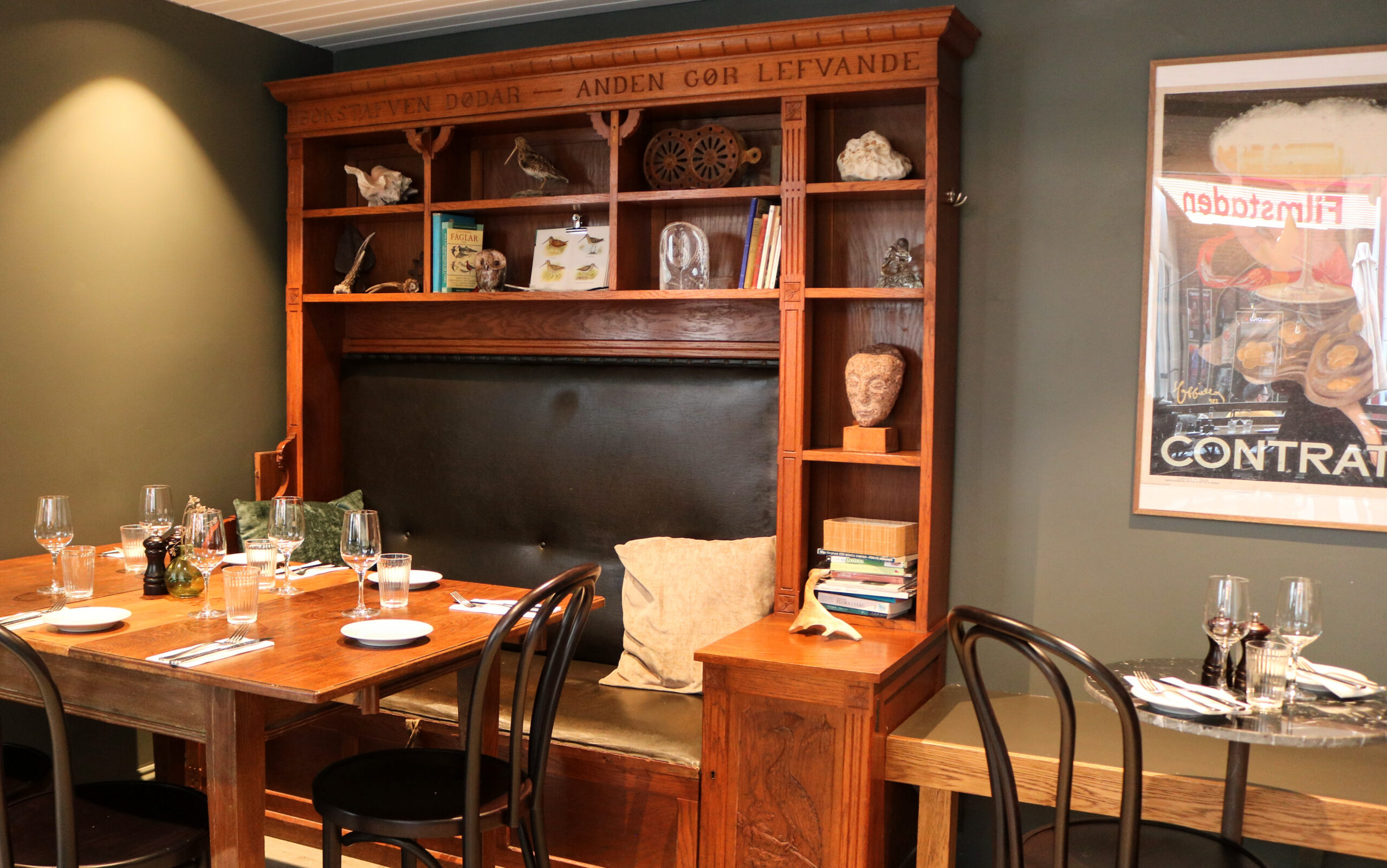 Lokalen är härligt trång med den svängda träbaren som nav för en lundensiskt blandad publik i alla åldrar som sippar bubbel, dricker öl med snacks eller kör fullskalig middag.