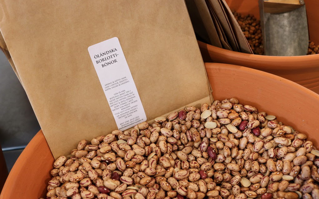 I butiken är borden välfyllda med färska grönsaker, kryddor och olika typer av bönor. Du finner även lakrits från Almaregården, kyckling från Ebbatorpet, Tollarpssalami, kaffe från Södra Sandby kafferosteri och Eslövsvinäger.