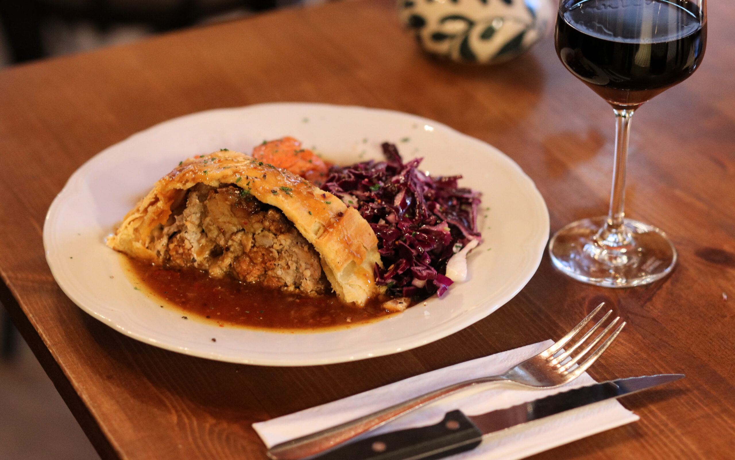 Den lilla, men ack så trevliga bistromenyn, erbjuder ofta en ragu, en matig sallad och en paj som smakar allt annat än en tråkig kylskåpskall historia. Till detta dricker du såklart en kall öl eller ett trevligt glas vin.