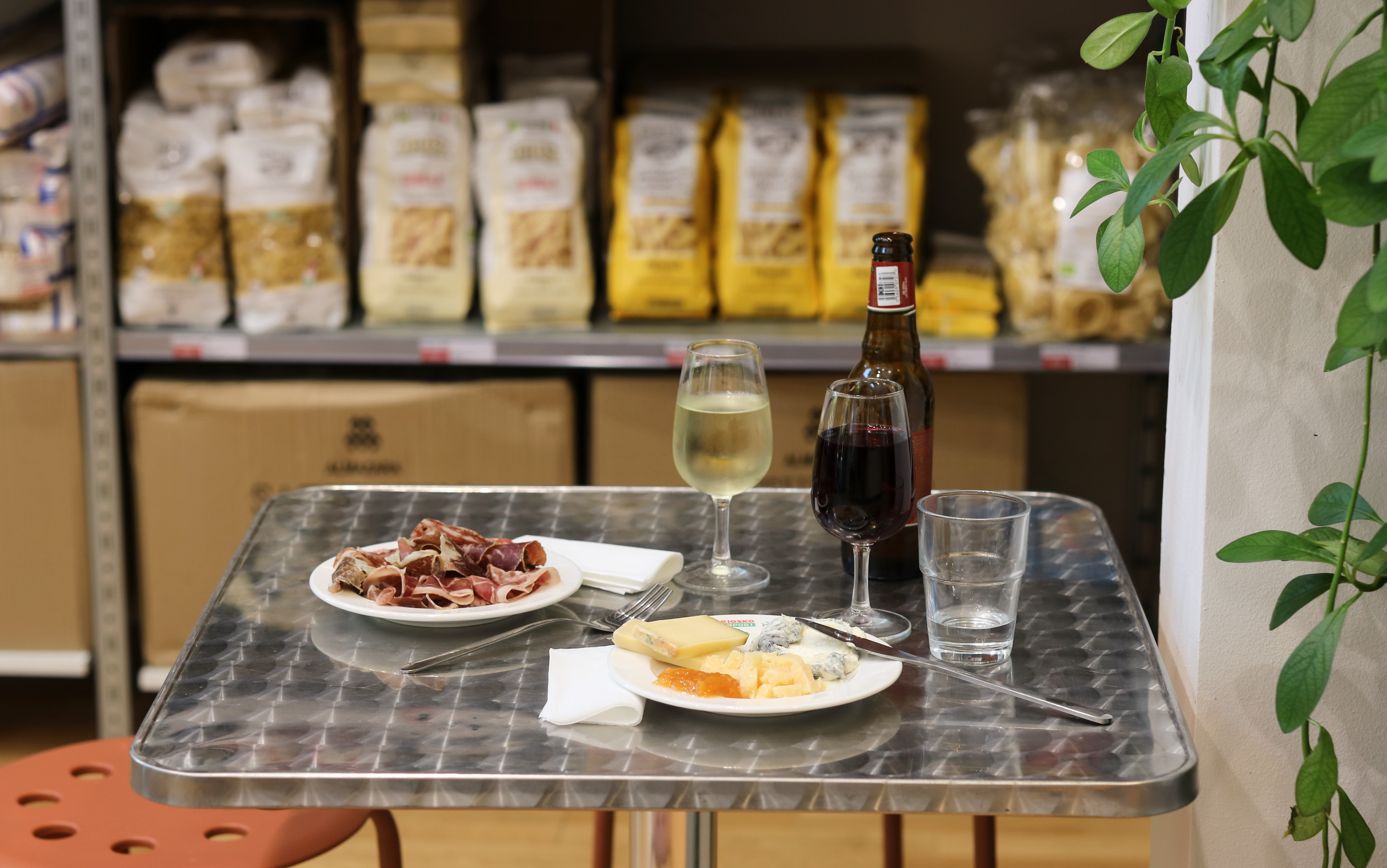 Kiosko Import är Bar Kioskos lillasyster som agerar lagerbutik, deli och häng för den som vill droppa in på en macka, ost & chark och såklart lite gott i glaset – allt under kontinental lysrörsbelysning.