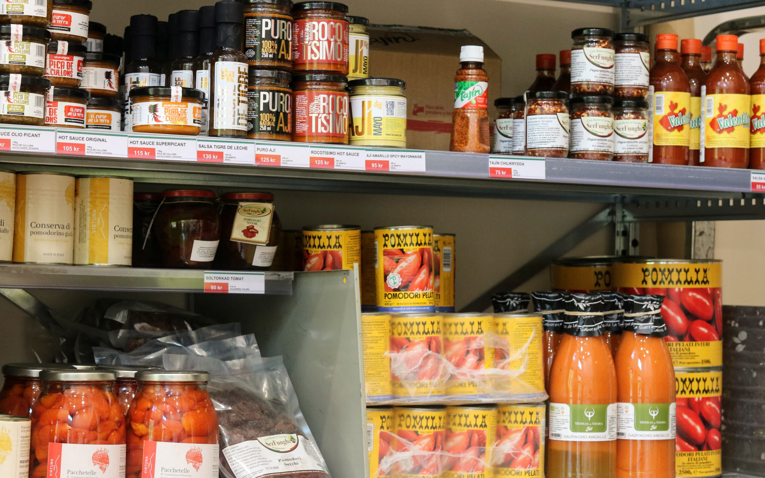 I den lilla lokalen runt Möllevångsknuten är delikatessutbudet främst från Spanien, Italien, Portugal och Latinamerika med allt från bönor, pasta, tomatsåser, olivoljor, juicer och olika konserver. Även en hel del ekologiskt grönt och ett mindre men trevligt utbud av ost och chark finns också att köpa med sig eller äta på plats.