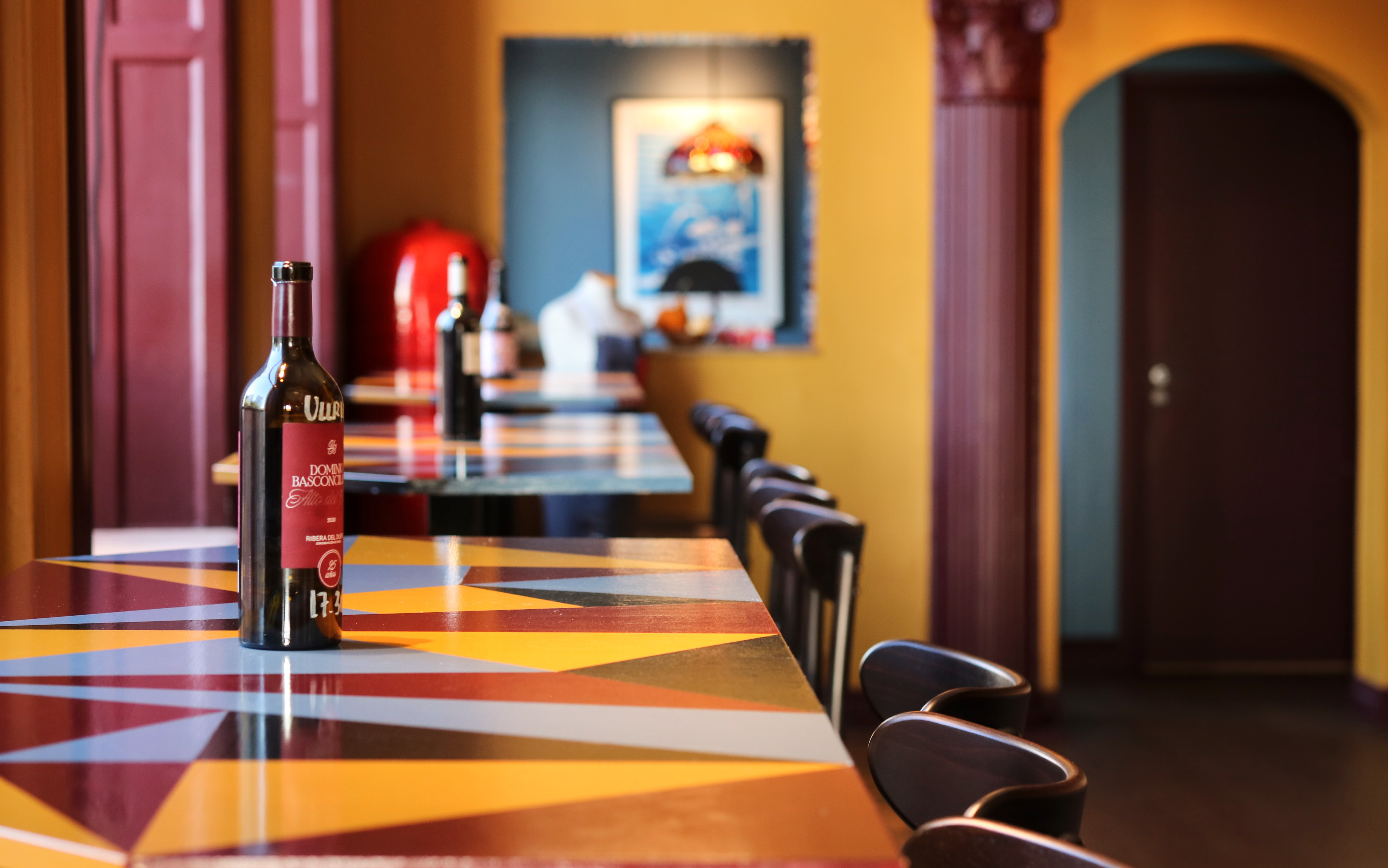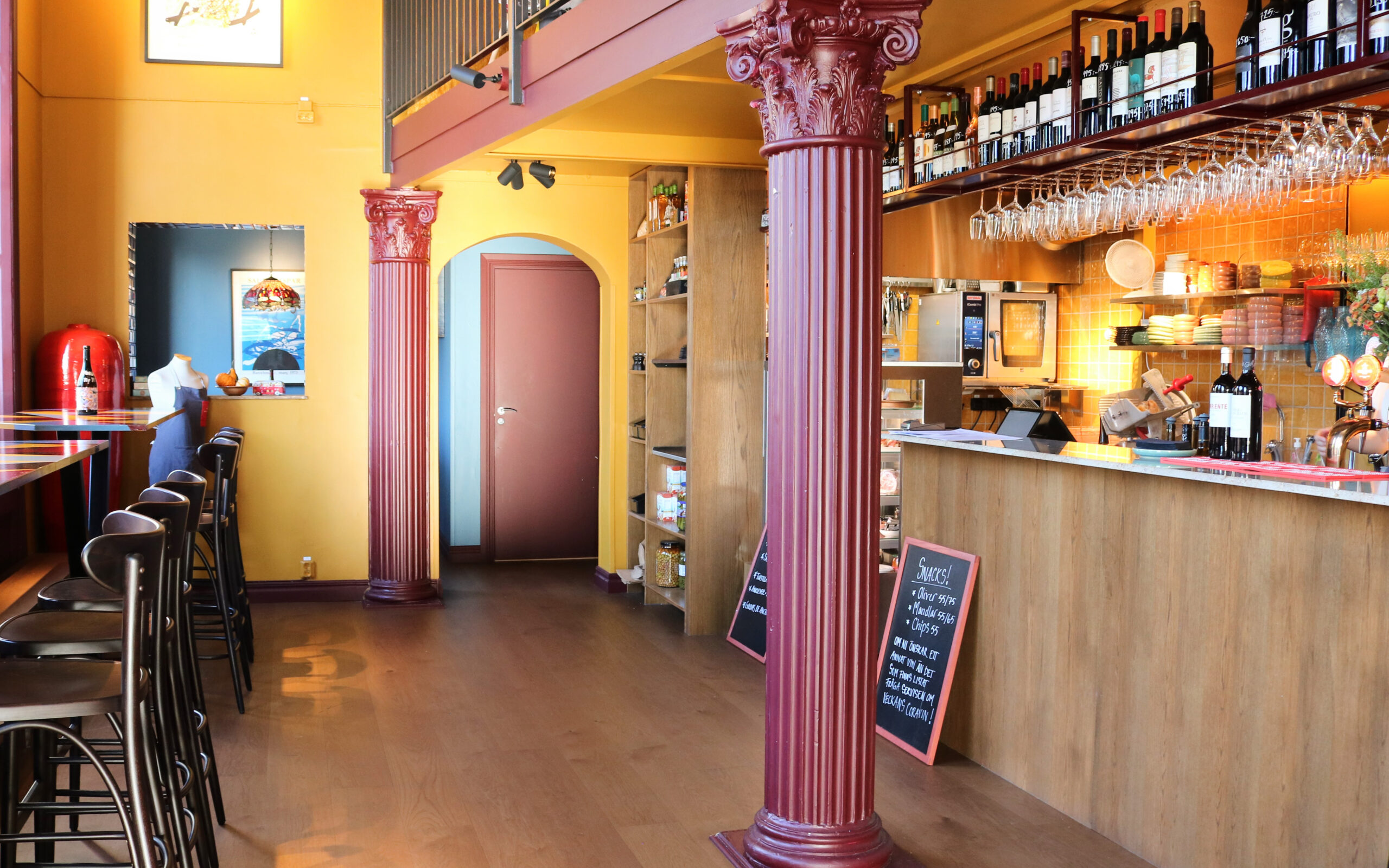 Med senapsgula och roströda toner på väggar, bord och detaljer omsluts du av en varm och välkomnande känsla, även när kylan ligger tung utanför dörren. Vill du ha lite mer puls sätter du dig vid barborden på bottenvåningen – söker du intimitet tar du trappan upp där det är mer avskilt.