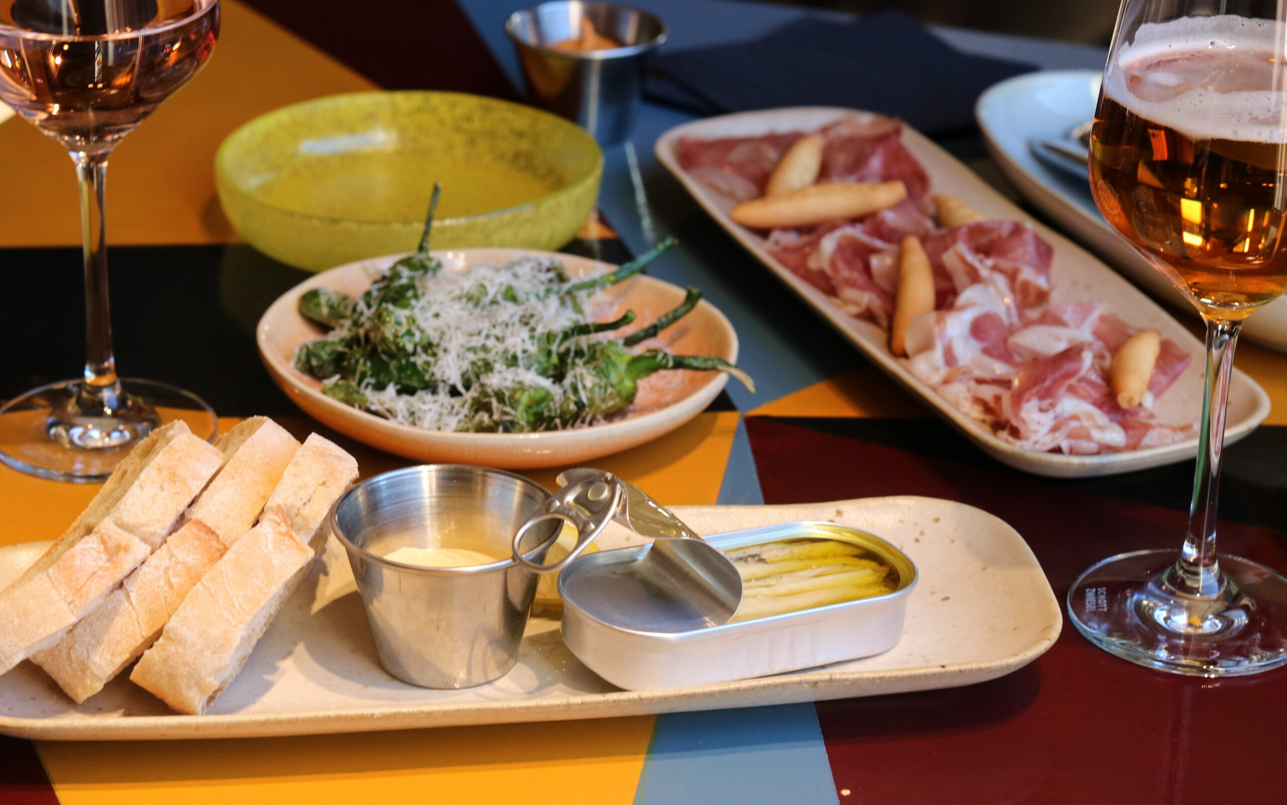 Tapasmenyn är klassisk spansk med mycket konserver och dagsfärska pintxos. Givetvis finns även patatas bravas, gambas al pil pil, pimientos de padrón och jamón ibérico att beställa. I glaset då? Där är det spansk öl, cava eller sangria för hela slanten.